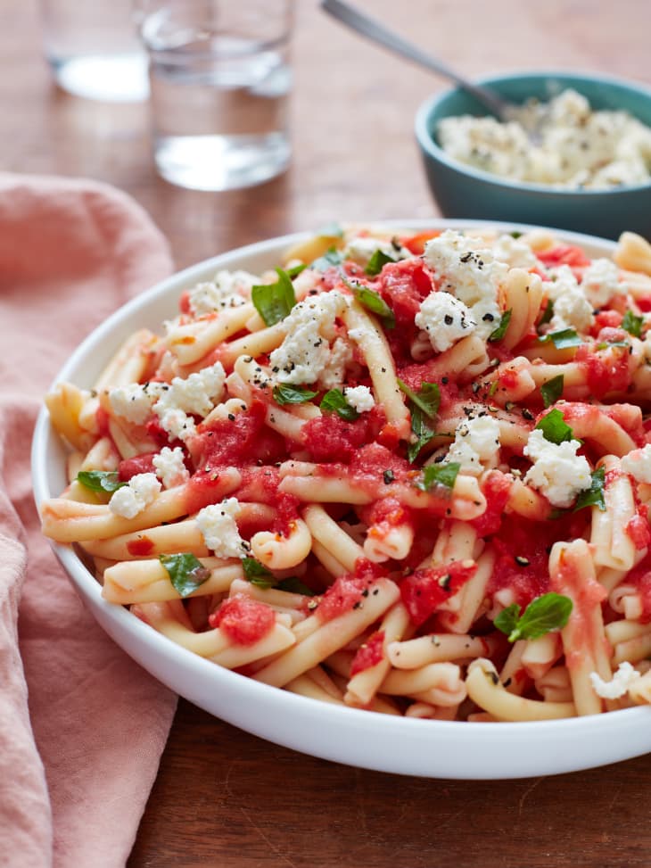 Chop the onion as finely as you can and the basil roughly. Salt and pepper to taste. Process tomatoes thru a Tomato Sieve or the way I do it is thru my Kitchen Aid tomato.